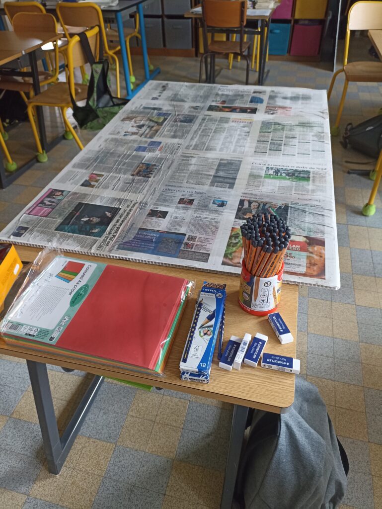 Intervention d’Arts Plastiques en milieu scolaire : Collage, 4 panneau de 100x50cm, 2025.